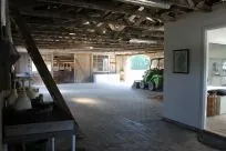 Maskinhuset er på ca 200 m2 og bruges i det daglige til opbevaring af hø, halm, træpiller og rummer også ophængsmuligheder til dækkener (stativ til at tørre dem),
